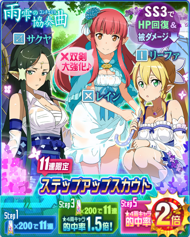 ソードアート オンライン メモリー デフラグ 雨の日姿の 4キャラクターが新登場 新ステップアップスカウト 雨雫の協奏曲 開催 Boom App Games